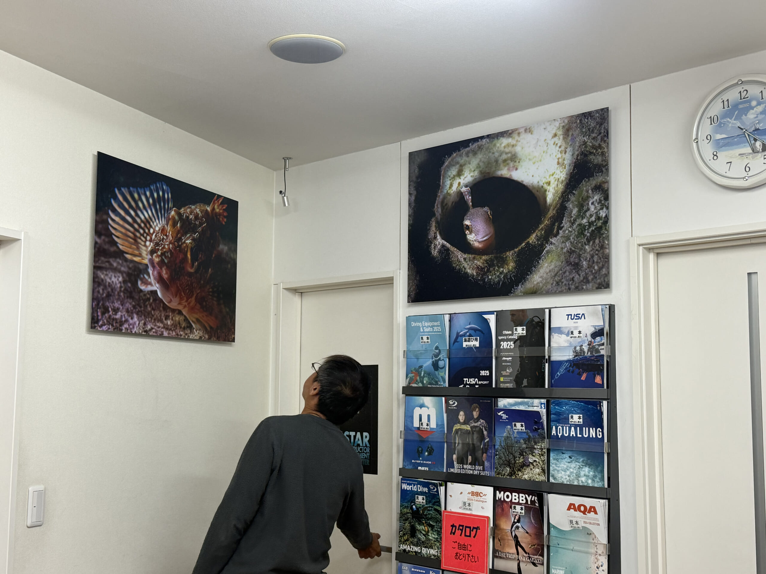 が実際に音海のスロープ前に潜り、撮影された生物の写真作品を2点展示させていただいております。