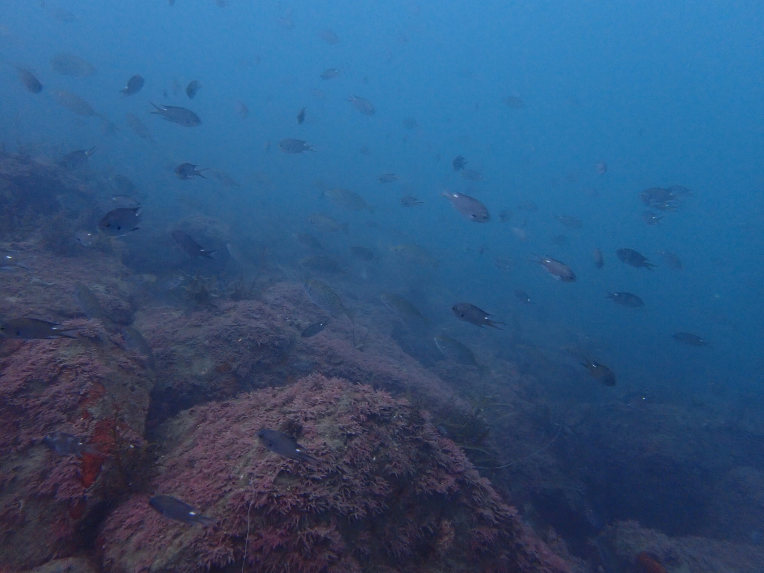 スズメダイも多かったのですが、アイゴがものすごいスピードであちらこちらで大暴れ。