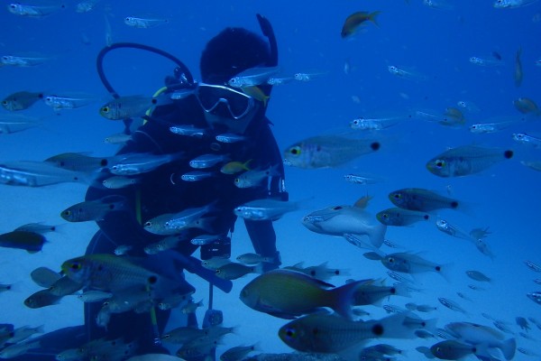 ここでは、ロボコンエビ(あなもりちゅうこしおりえび)ニセアカホシカクレエビ、ヨスジフエダイ、ユカタハタ、ケラマハナダイなど南国ならではの生物がたくさん見れました!!透明度もサイコー!!