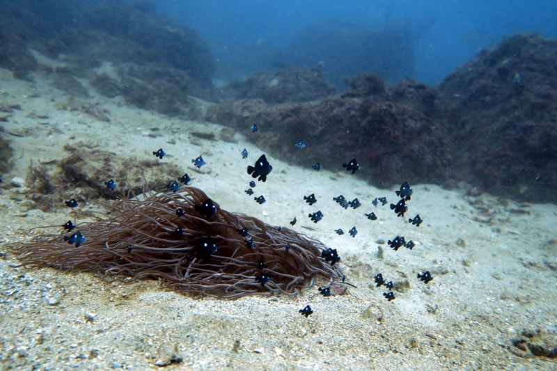 そして、いよいよ本日最後のダイビングはナイトダイビングです。水中は夜光虫がたくさんいてすごく幻想的でした!!その他、カワハギ、イソギンチャク、カレイ、エビなどなどたくさん見れました!!